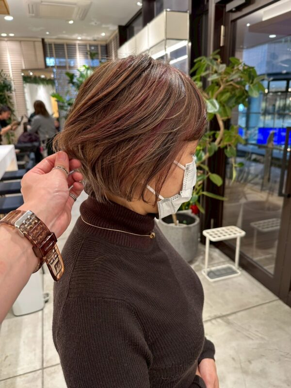 白髪ぼかしでマンネリしてきた方には、色を散りばめたカラーリングもおすすめです♪