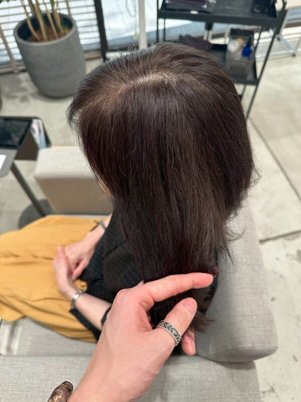 特に暗めな色やホームカラーの履歴があると、まず横ムラの修正からになります。